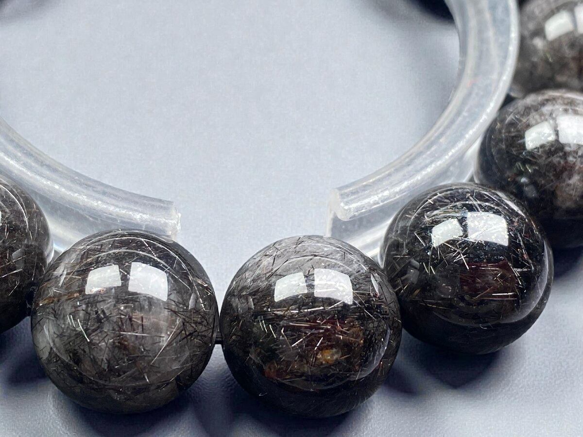 HZz8j19]ブラックシルバールチル 約15mm大珠 勝負に打ち克つ 超品位