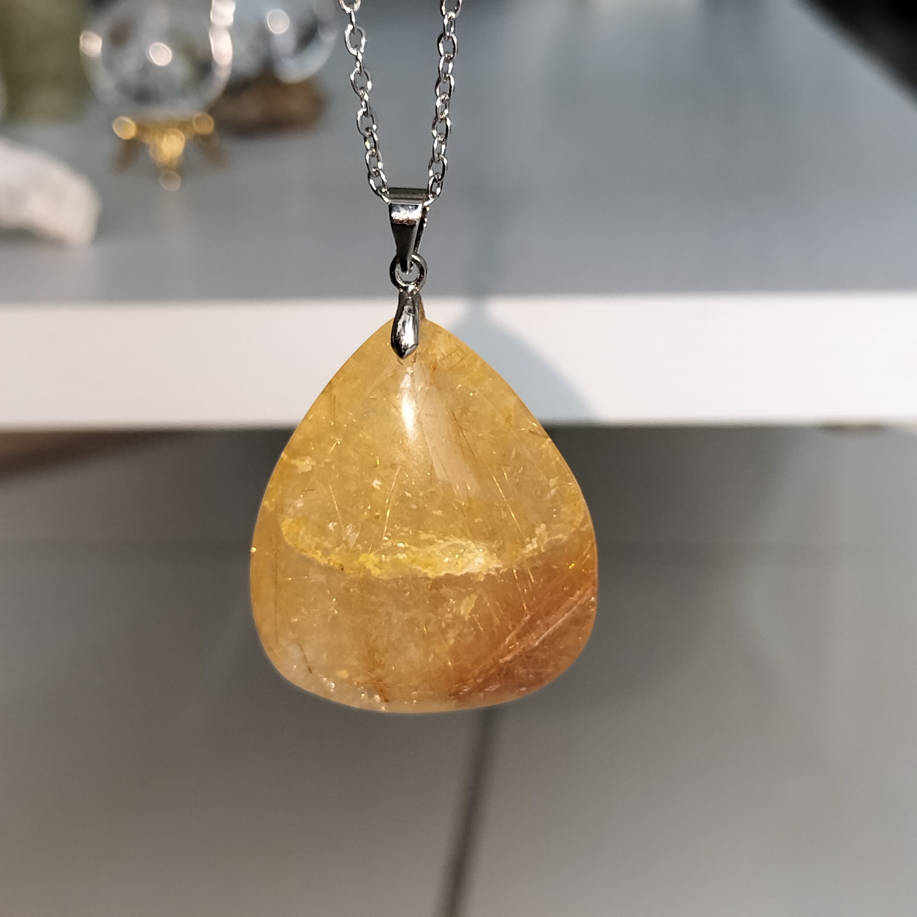 CJQ8j19]ルチルクォーツネックレス 金運、財運、仕事運☯式神封入