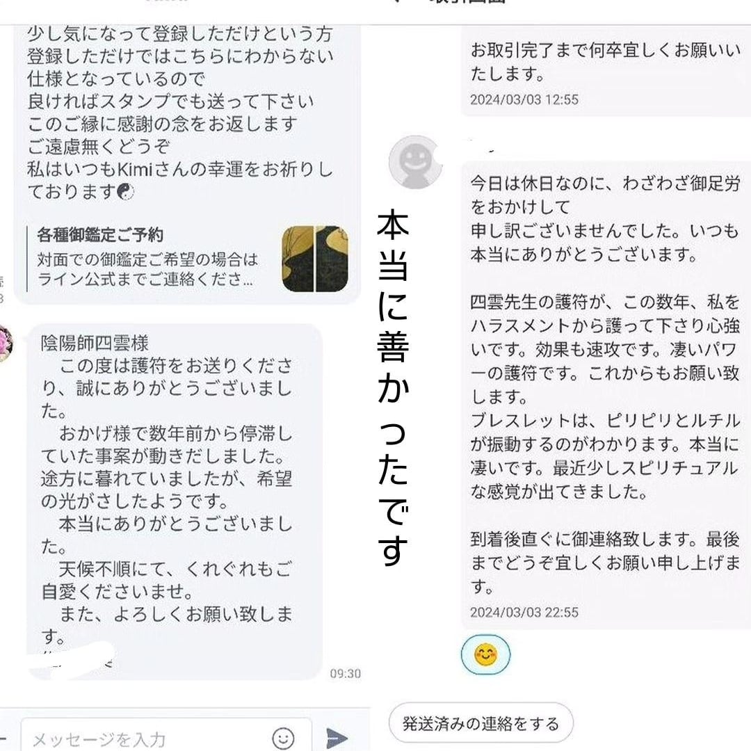 ・先日守護護符を送っていただき、無事に仕事が決まりました。ありがとうございます。またよろしくお願いいたします