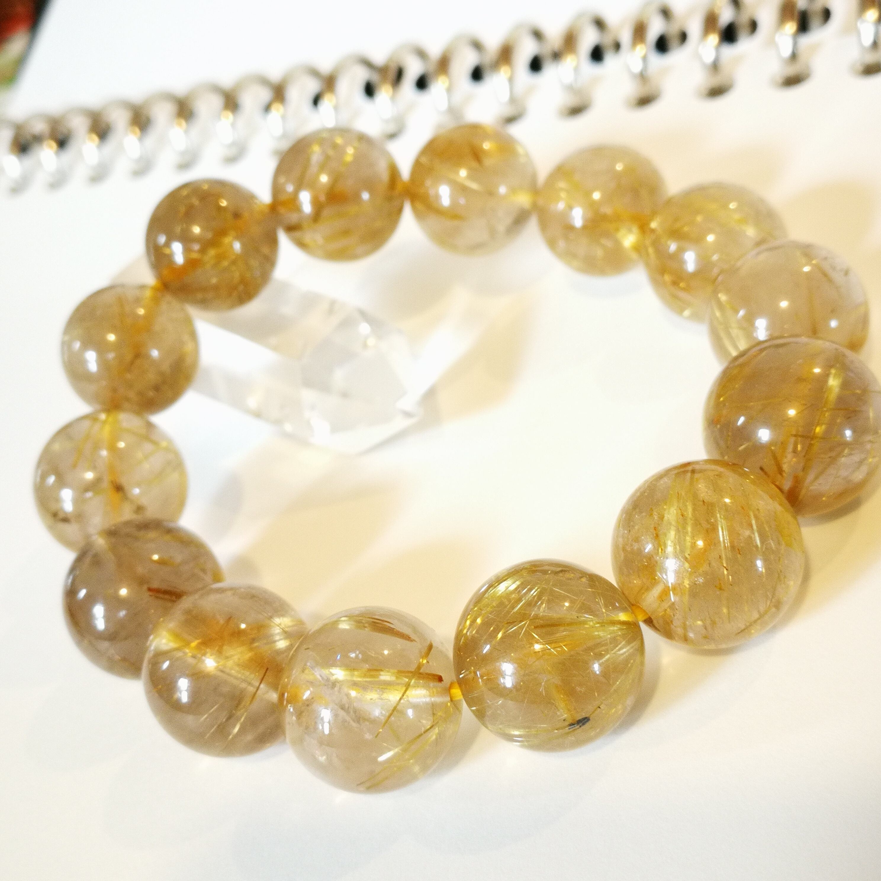5A+ゴールドタイチンルチル 14-15mm 金運、仕事運、潜在能力開放