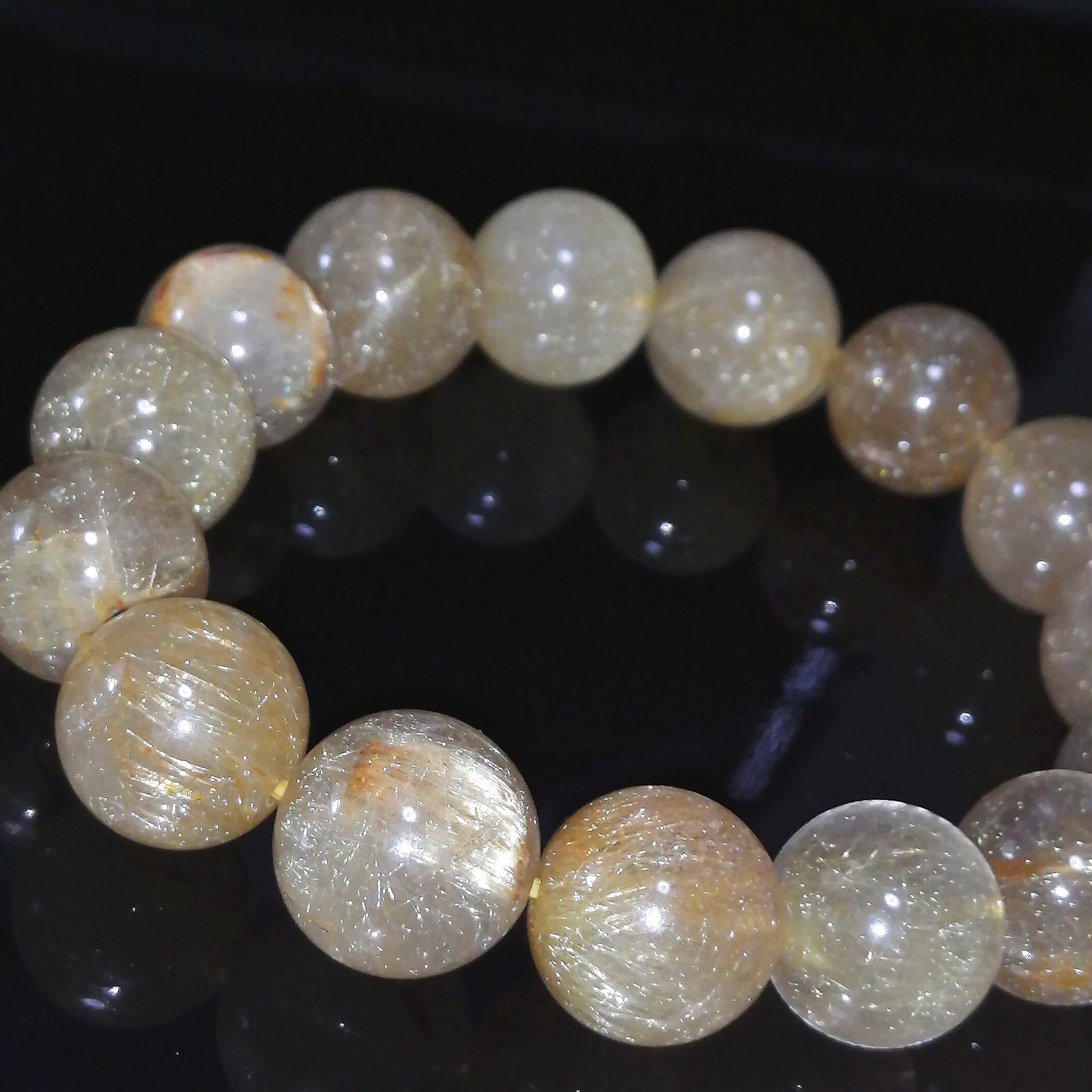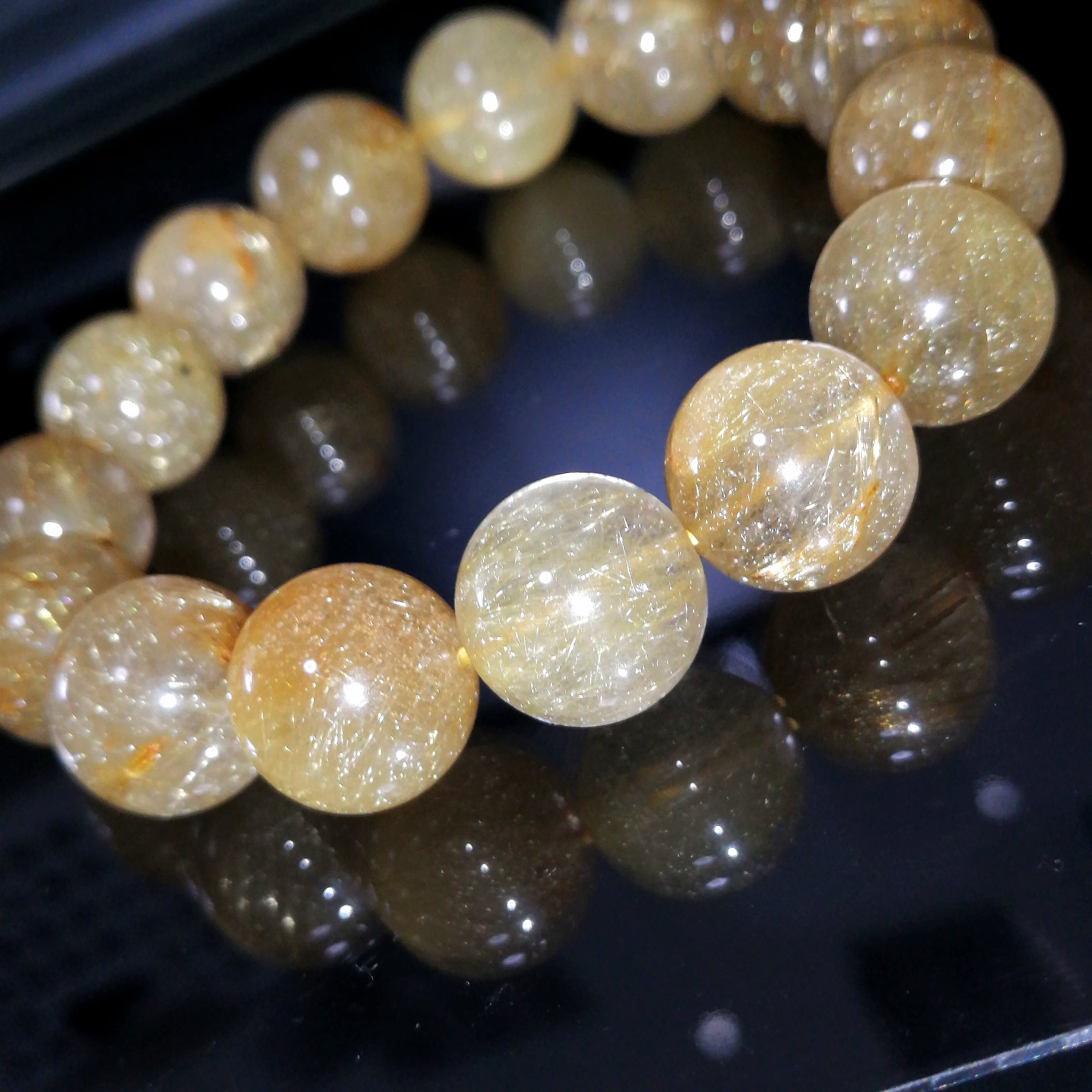 ゴールドタイチンルチル 金銭、仕事にまつわる開運 高価な14mm珠ブレスレット