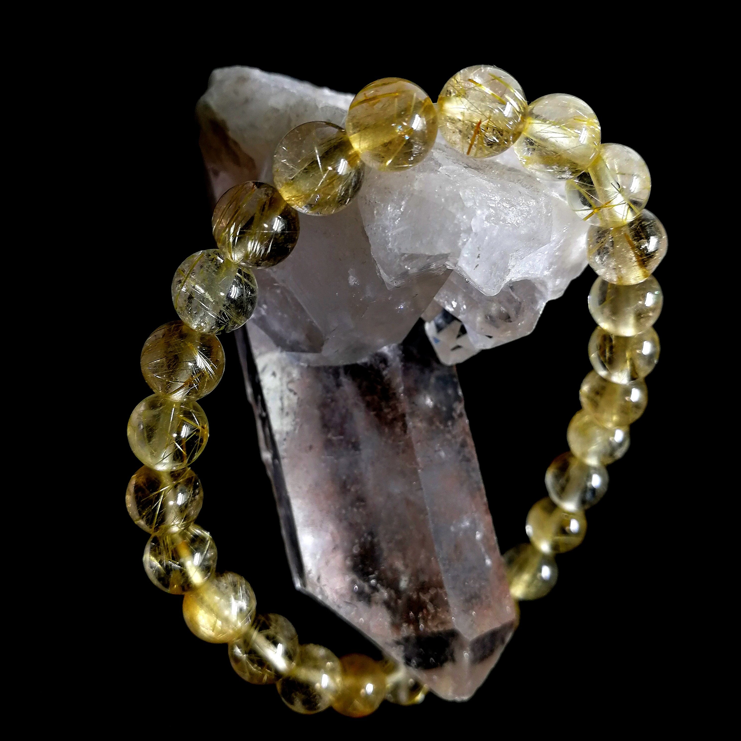 ★黄金【タイチンルチル】水晶ブレスレット内径16cm★7mm