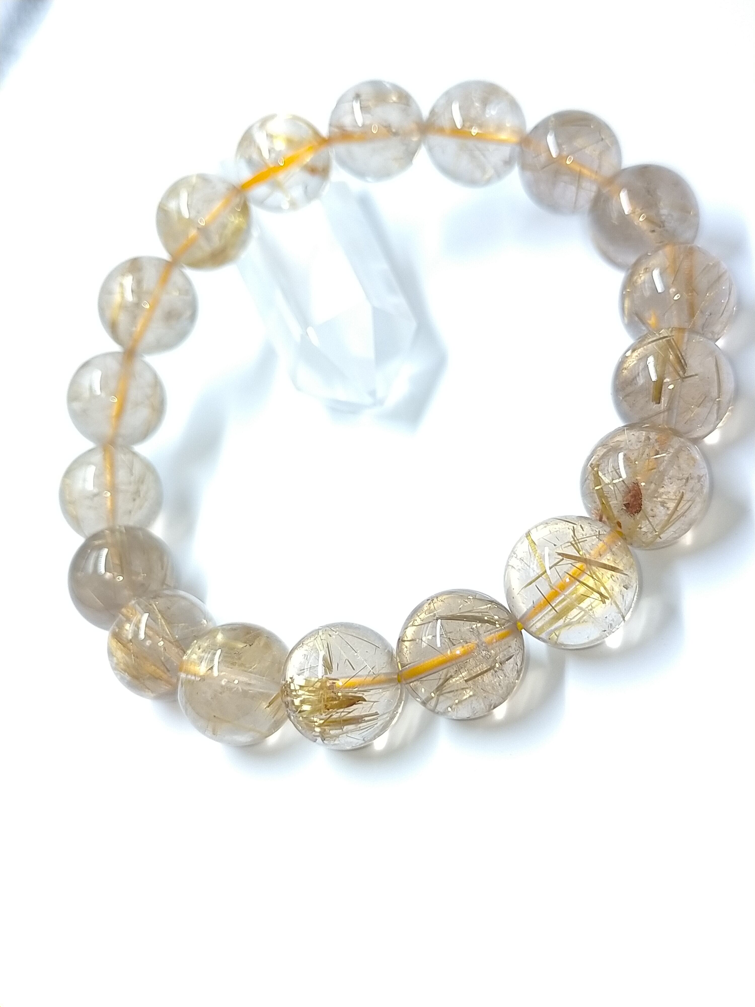 大珠11.5mm±0.5 迫力 男女兼用 ゴールドタイチンルチル 金、仕事、恋愛運開運