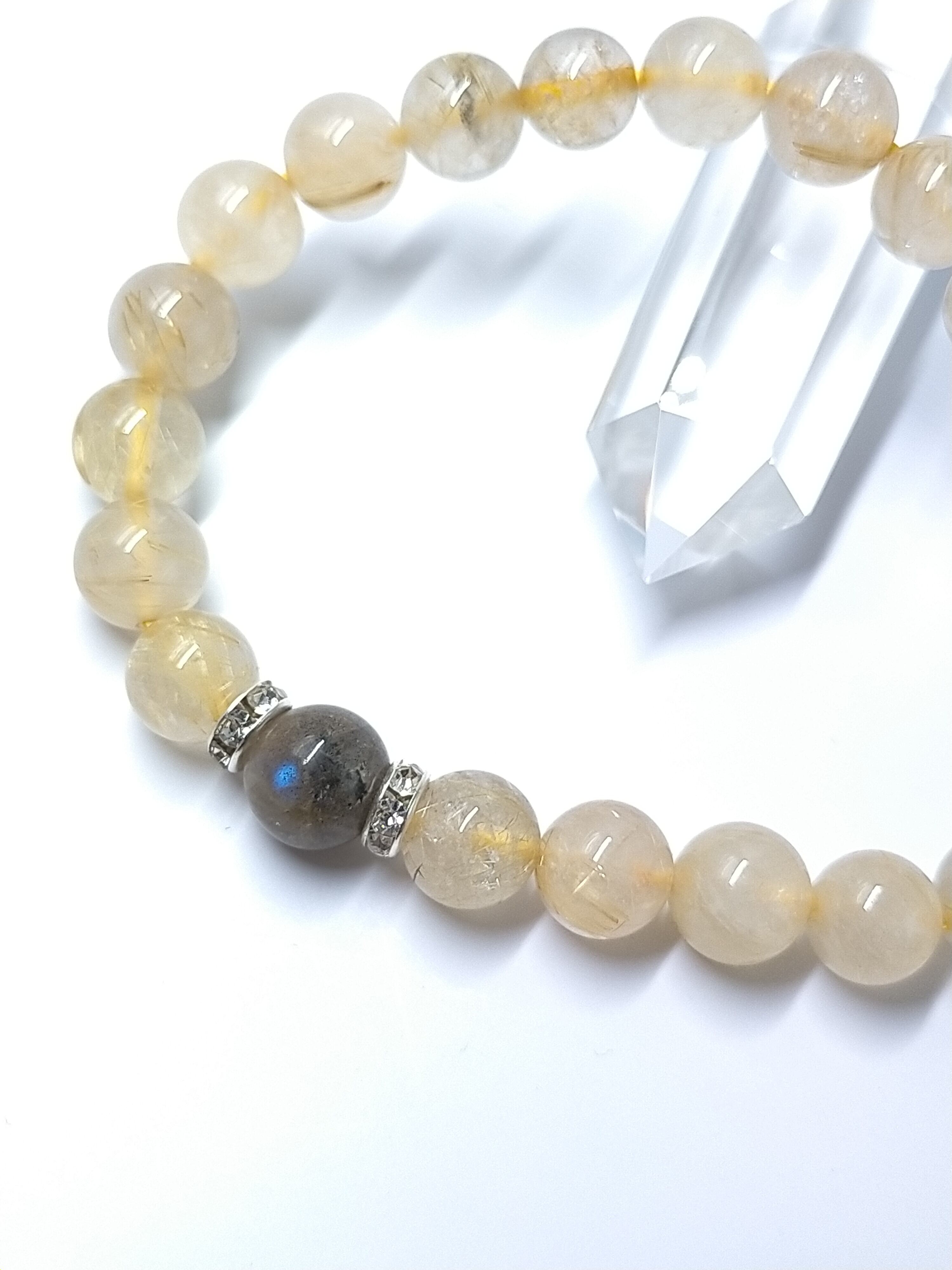 ラブルチル・財運のゴールドタイチンルチルと信念と霊性のラブラドライト陰陽師オリジナルブレス 8mm