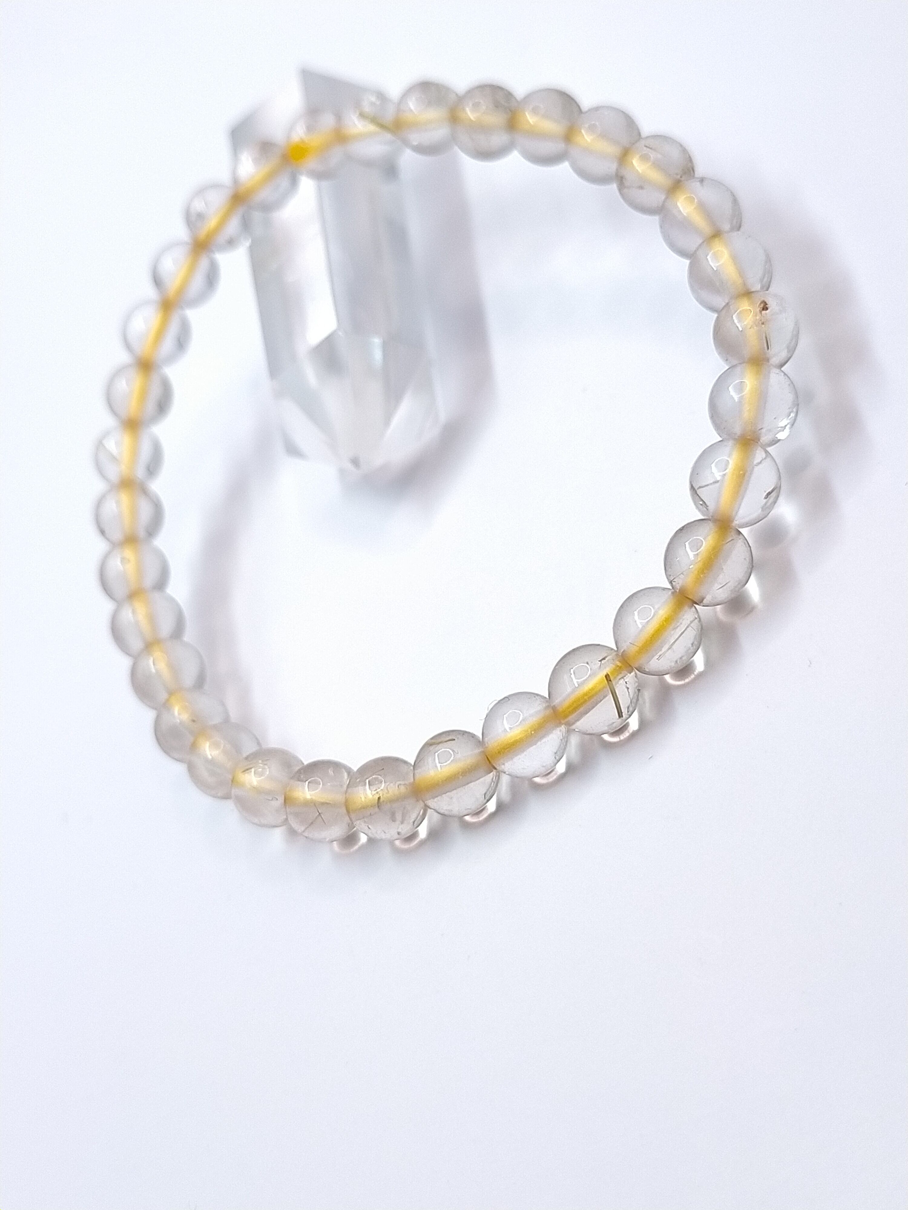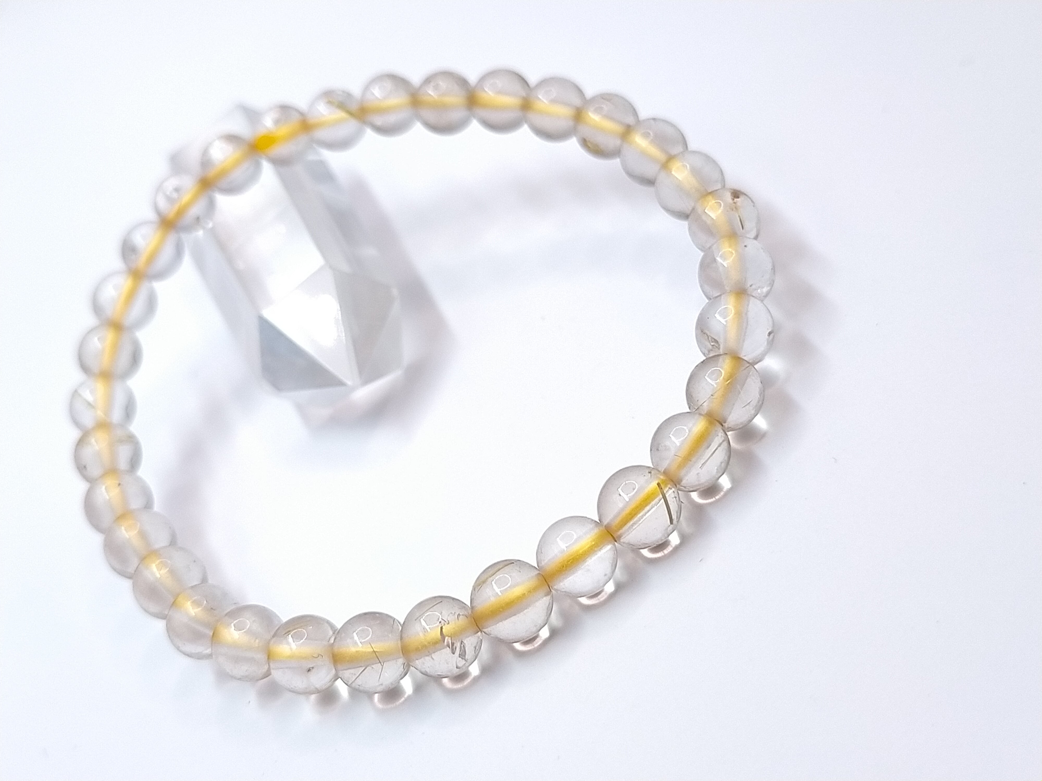 とても透明度の高い珠の中に金針入っており、最初の一本にはピッタリなルチルかと思います。