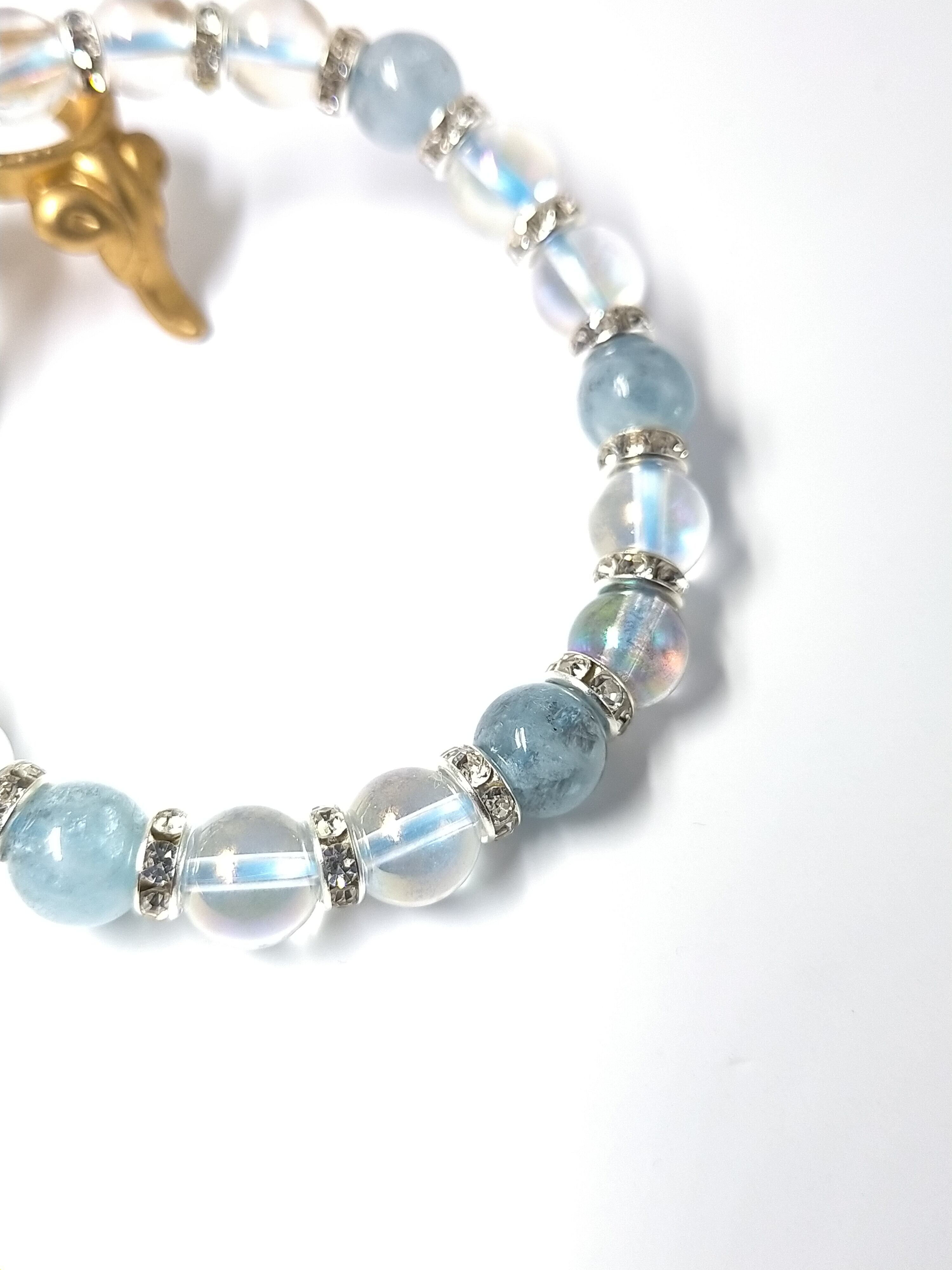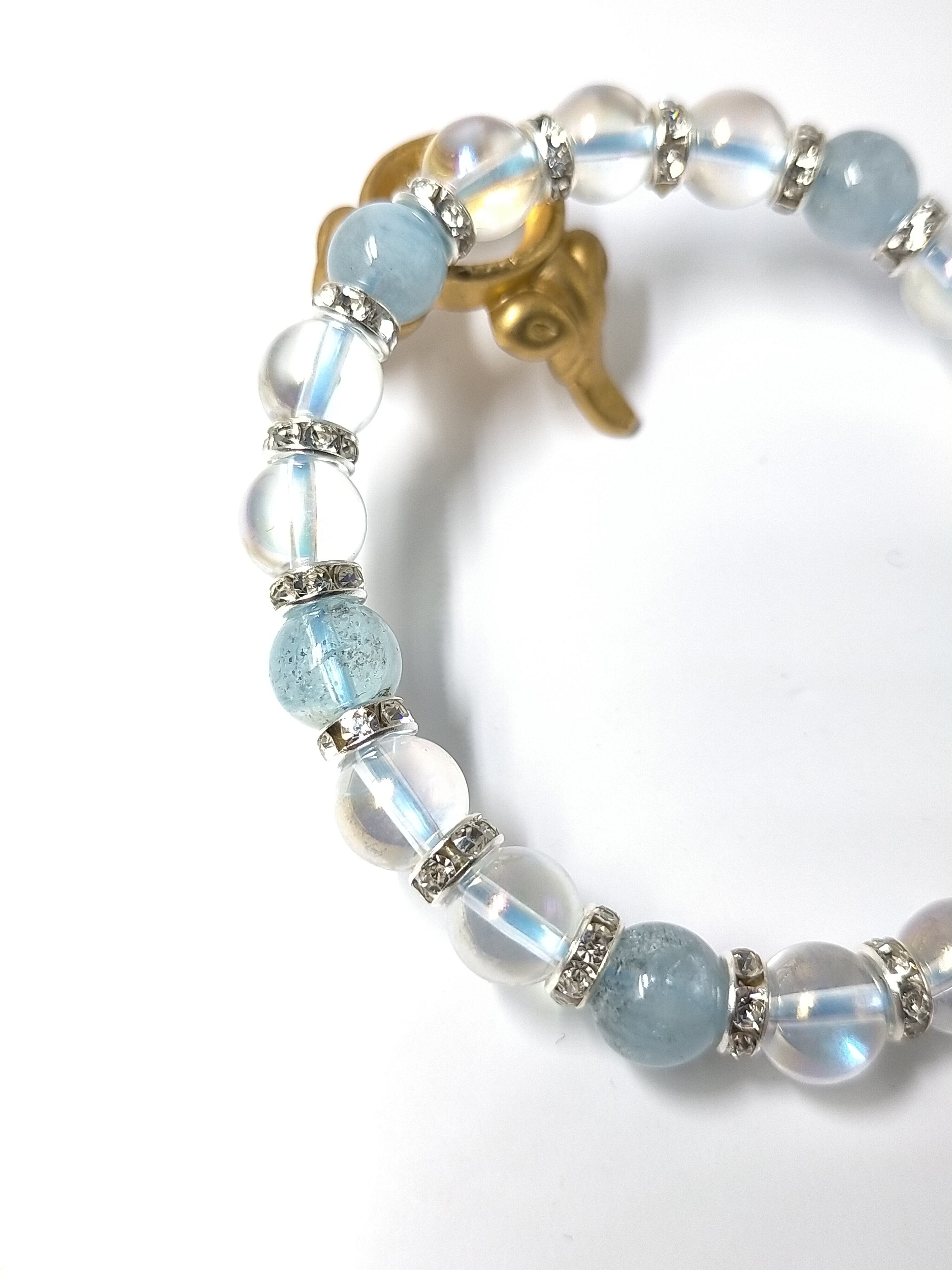 アクアマリンとブラジル産水晶を使った陰陽師オリジナルブレスレットです。