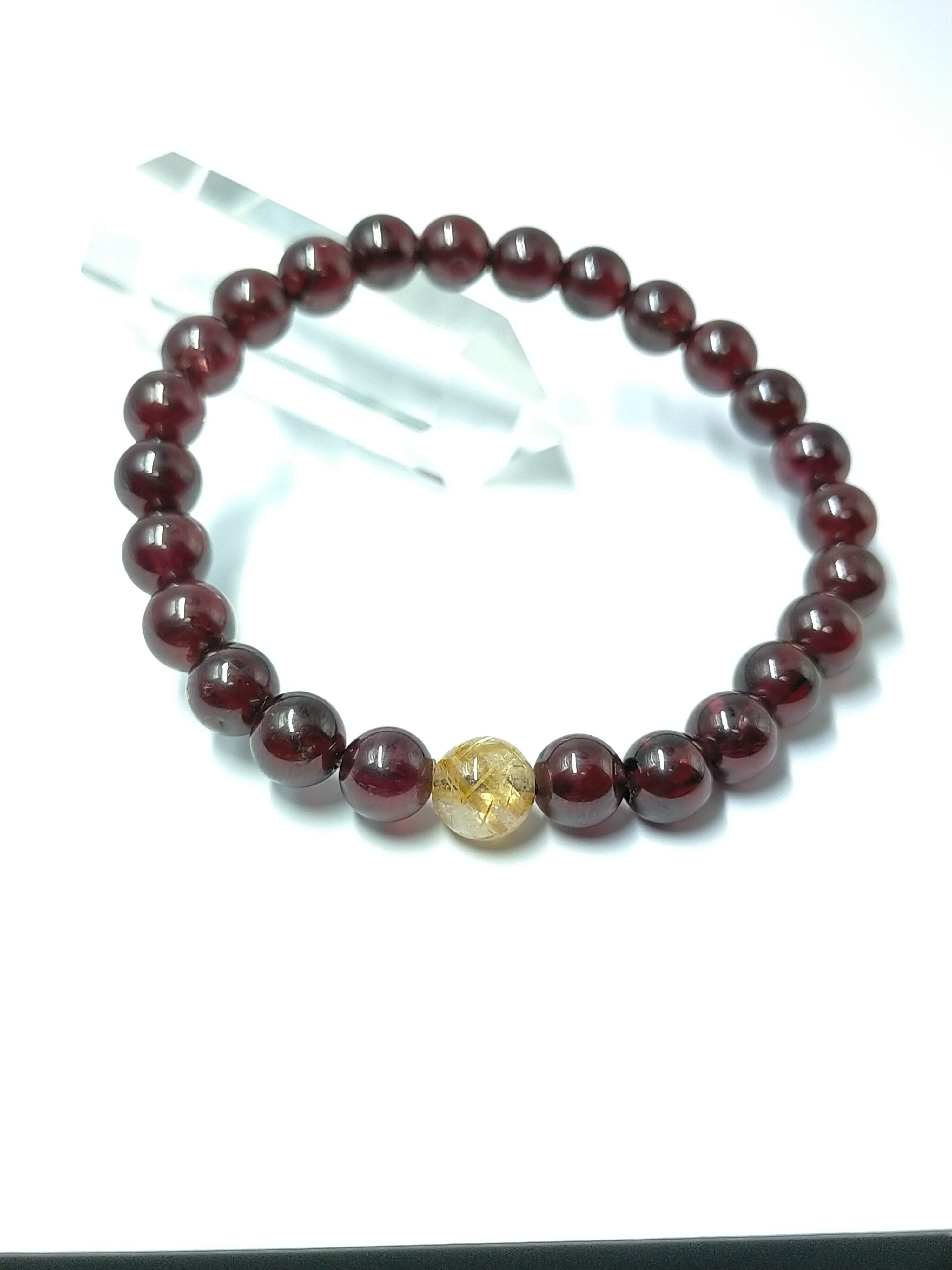 とても可愛いルビーにルチルをワンポイントにした四雲手製ブレスレットとなります。