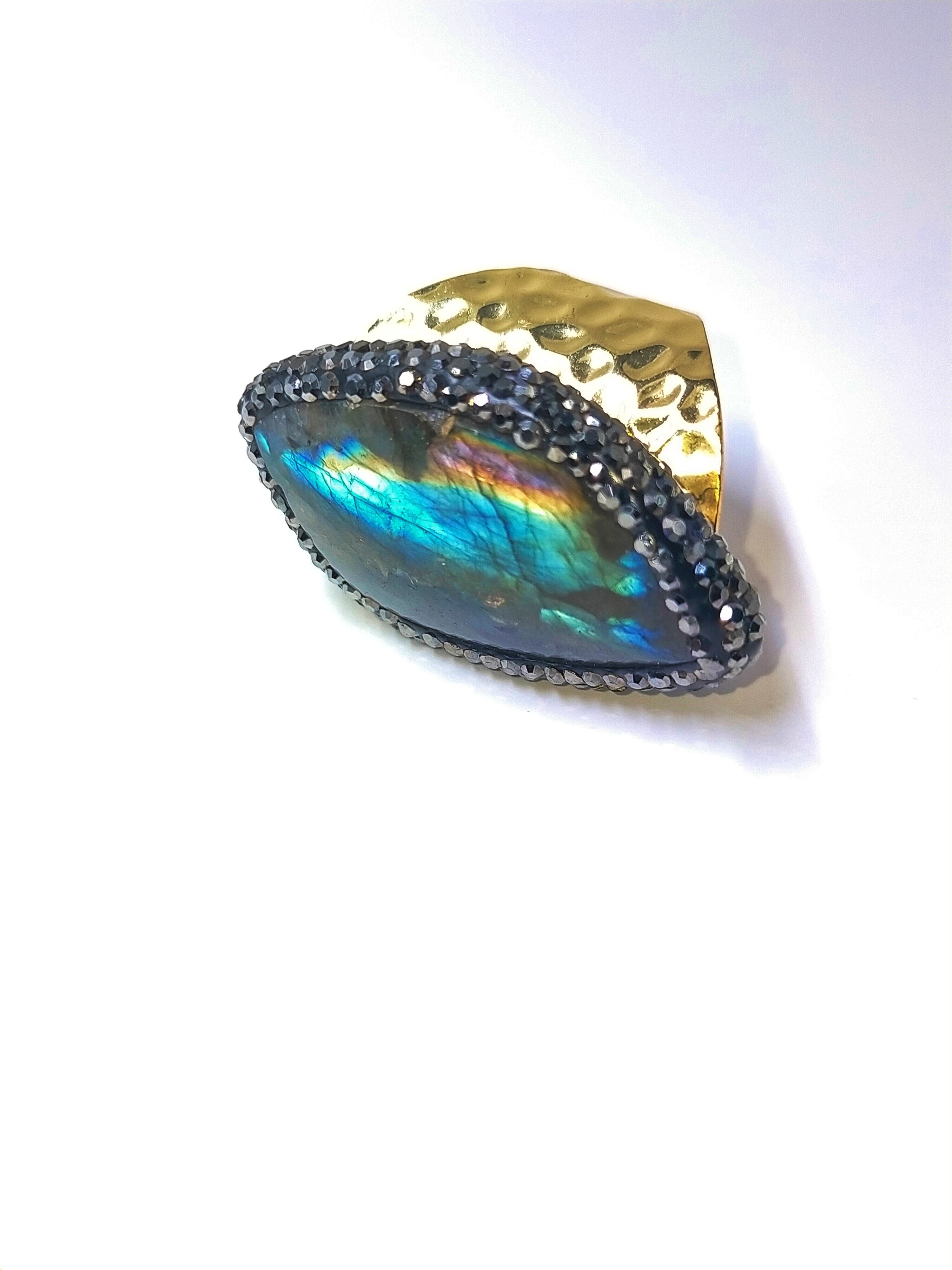 信念と霊性のラブラドライト 大きなリング 直感 神秘的なブルー光による邪祓い