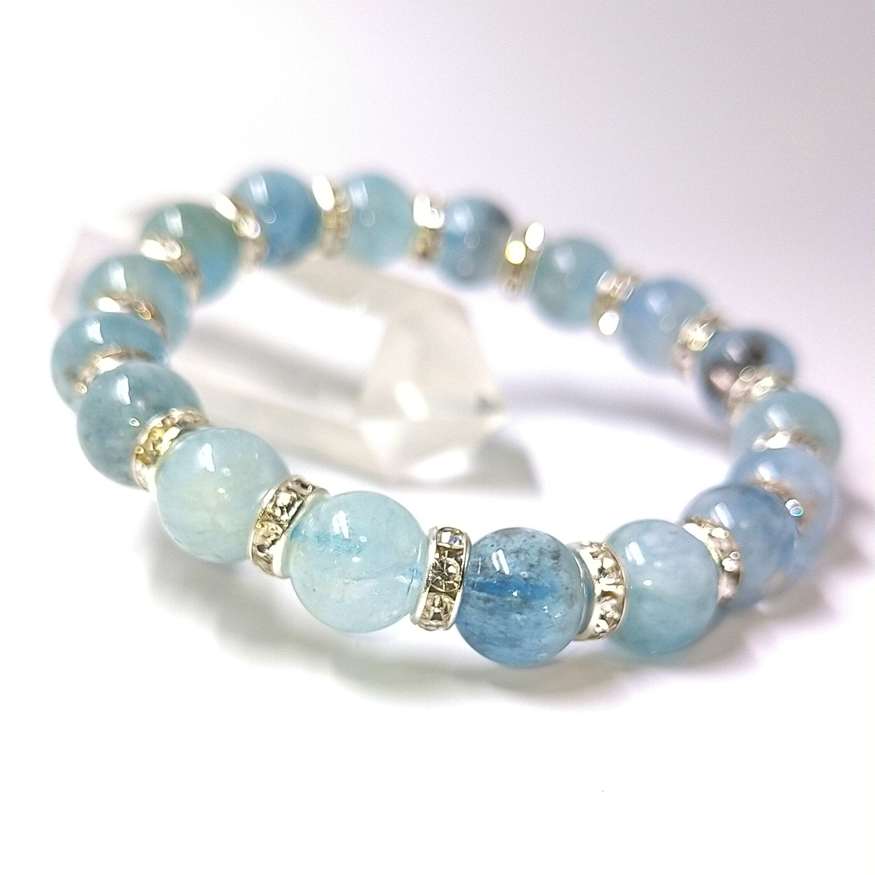 【式神封入】マダガスカル産アクアマリン8mm15cm 3月誕生石 恋愛結婚、家庭運 聡明 富