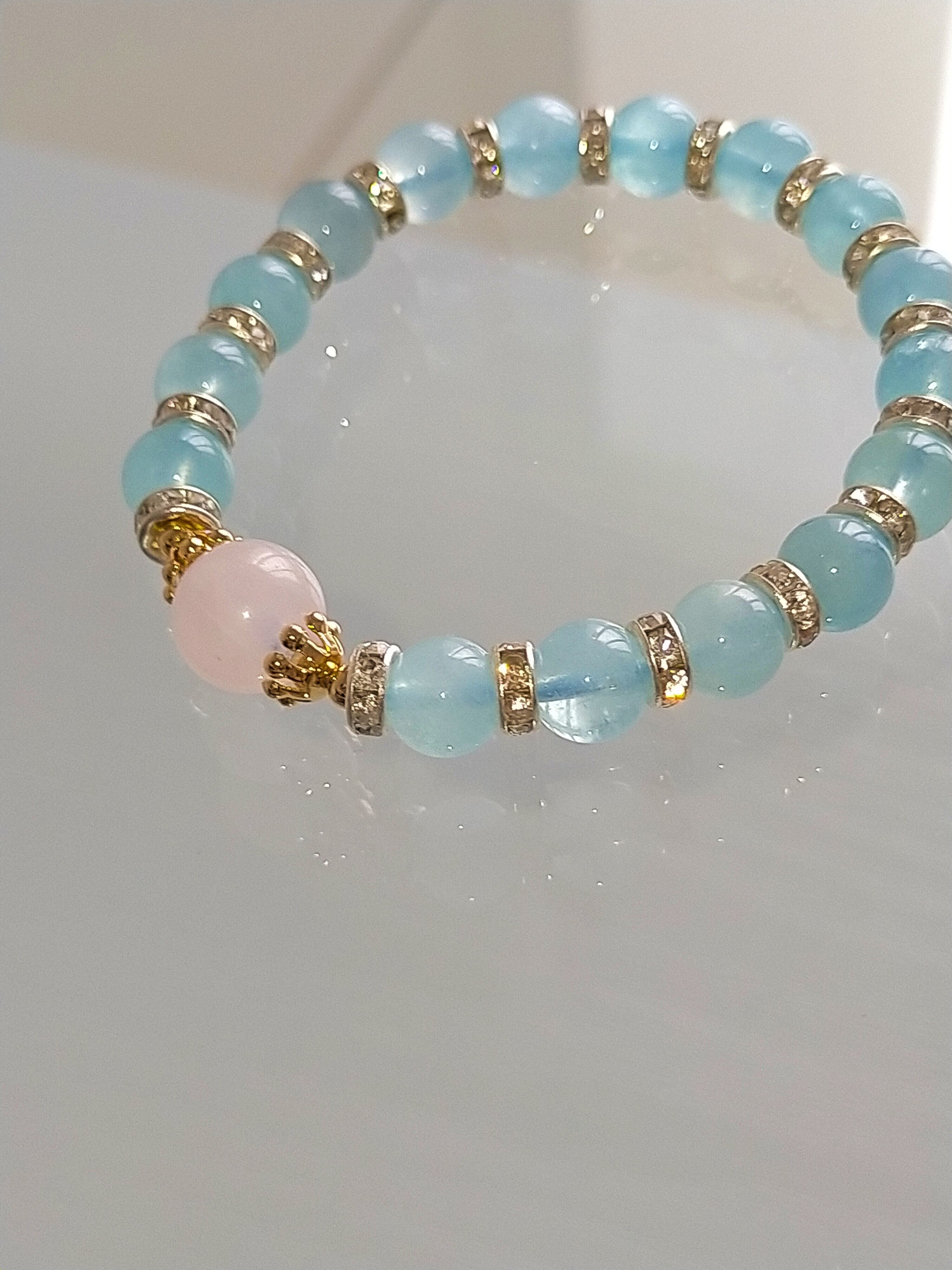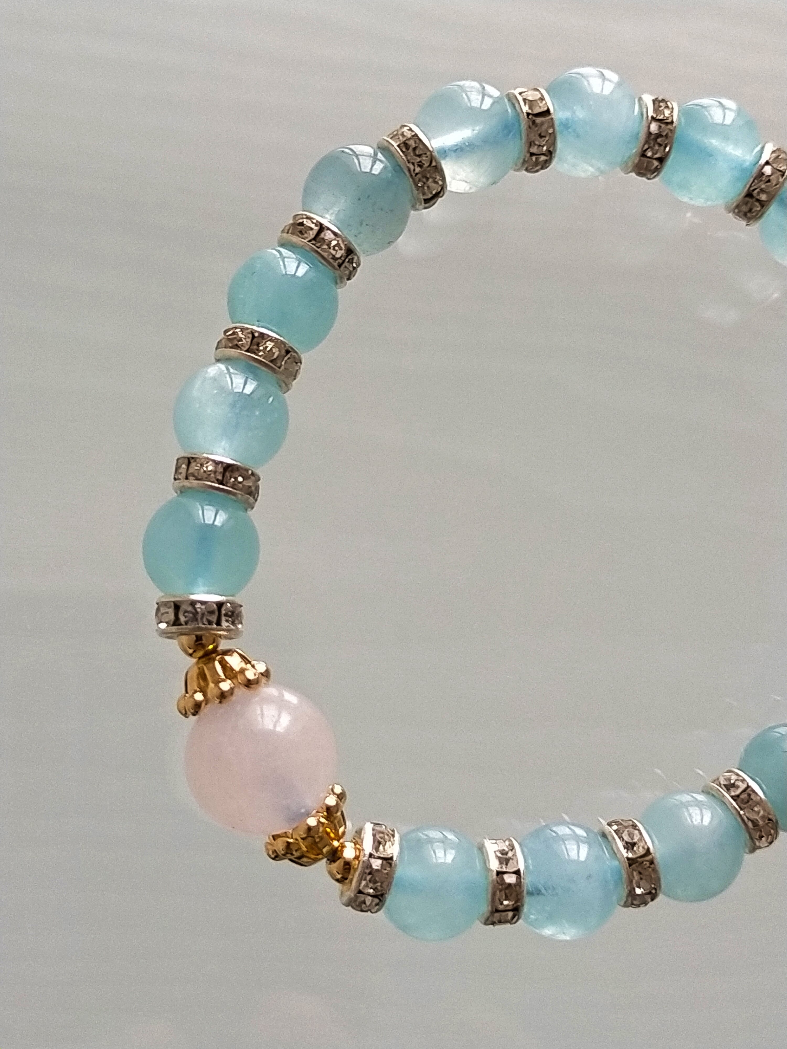 ローズクォーツ10、アクアマリン8㍉15cm 10月、3月誕生石 恋愛結婚家庭運