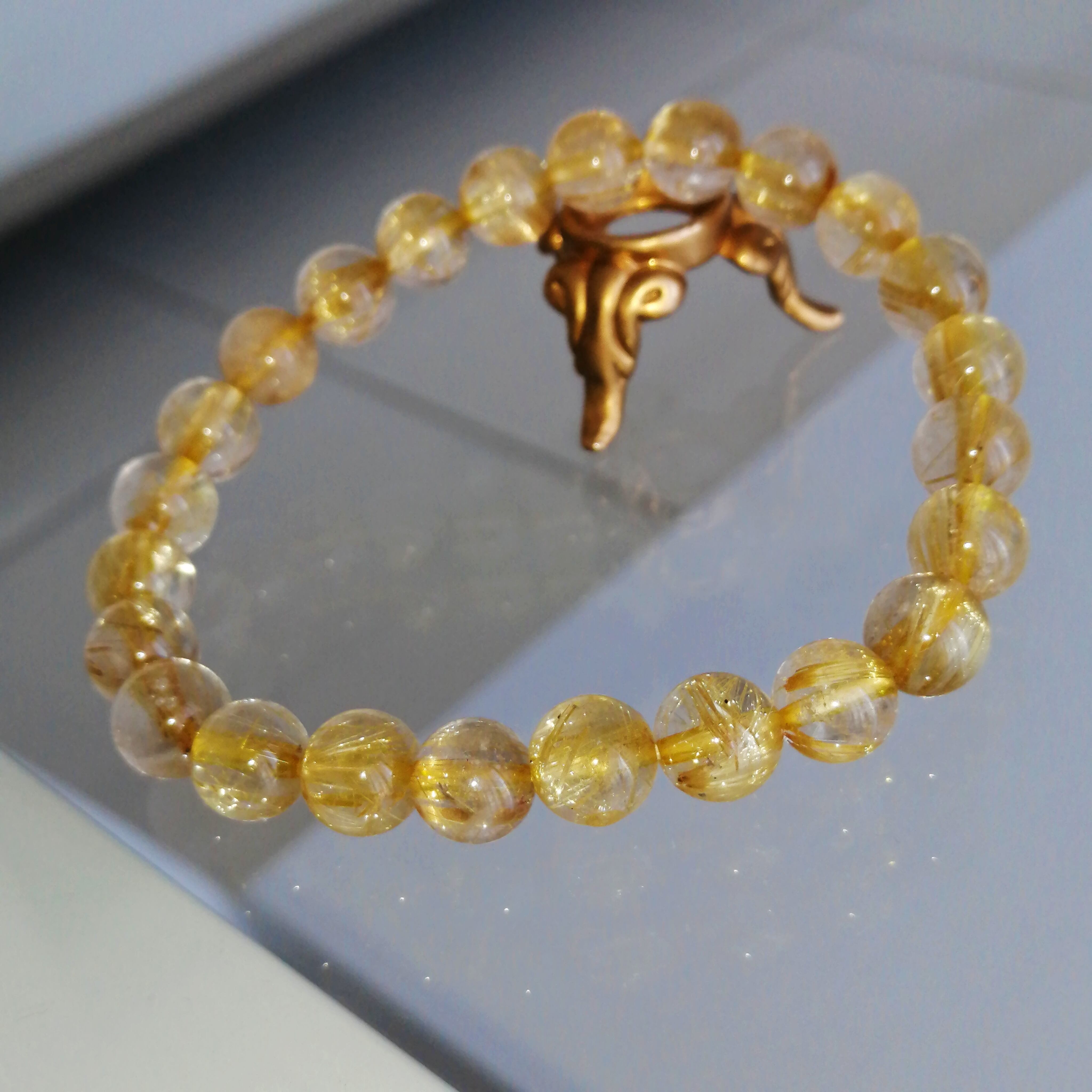 【式神封入】ゴールドタイチンルチルクォーツ 8mm 17cm 金、財、富