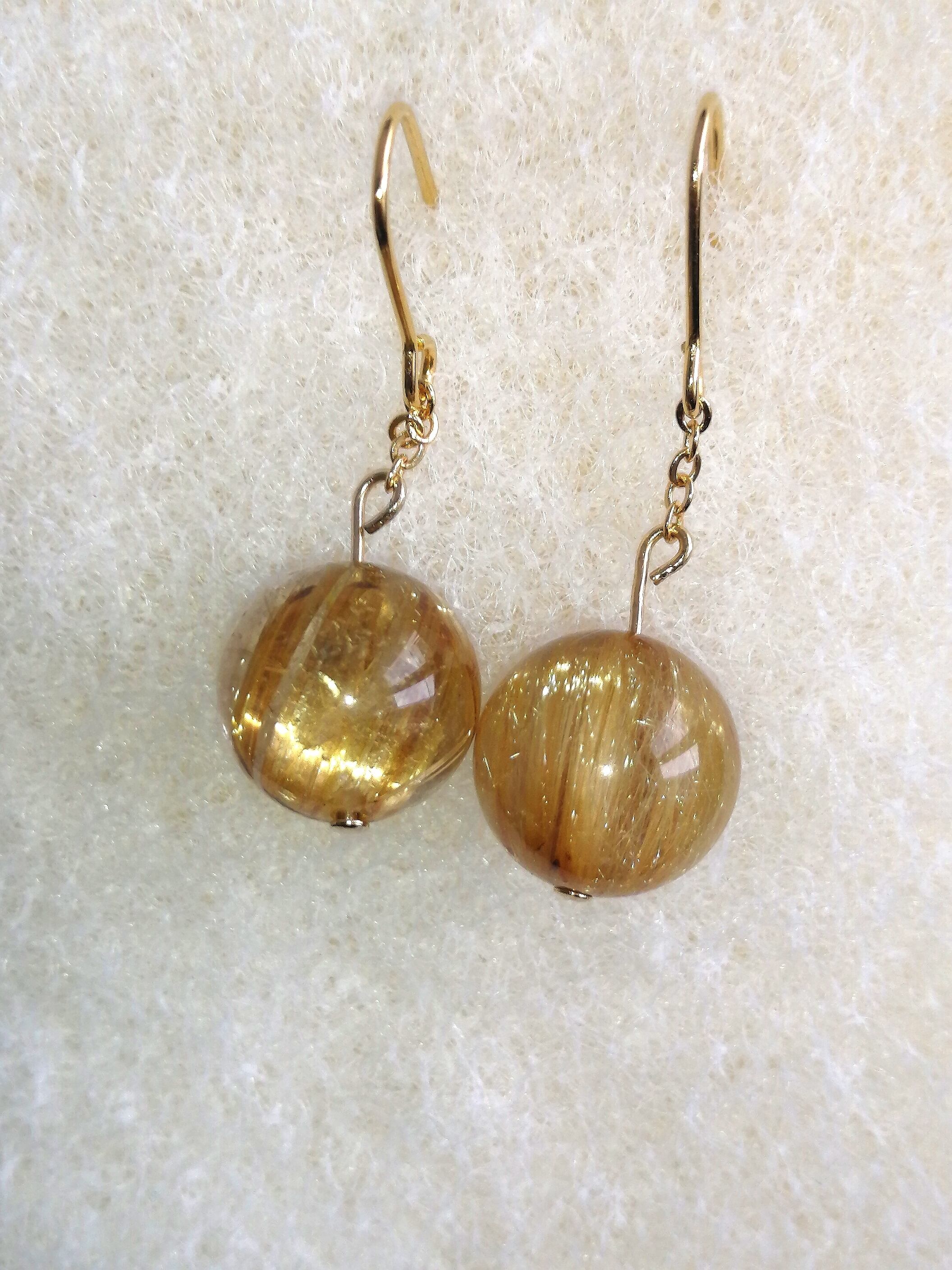 【式神封入】ゴールドタイチンルチルピアス[feZs] ハイクオリティ