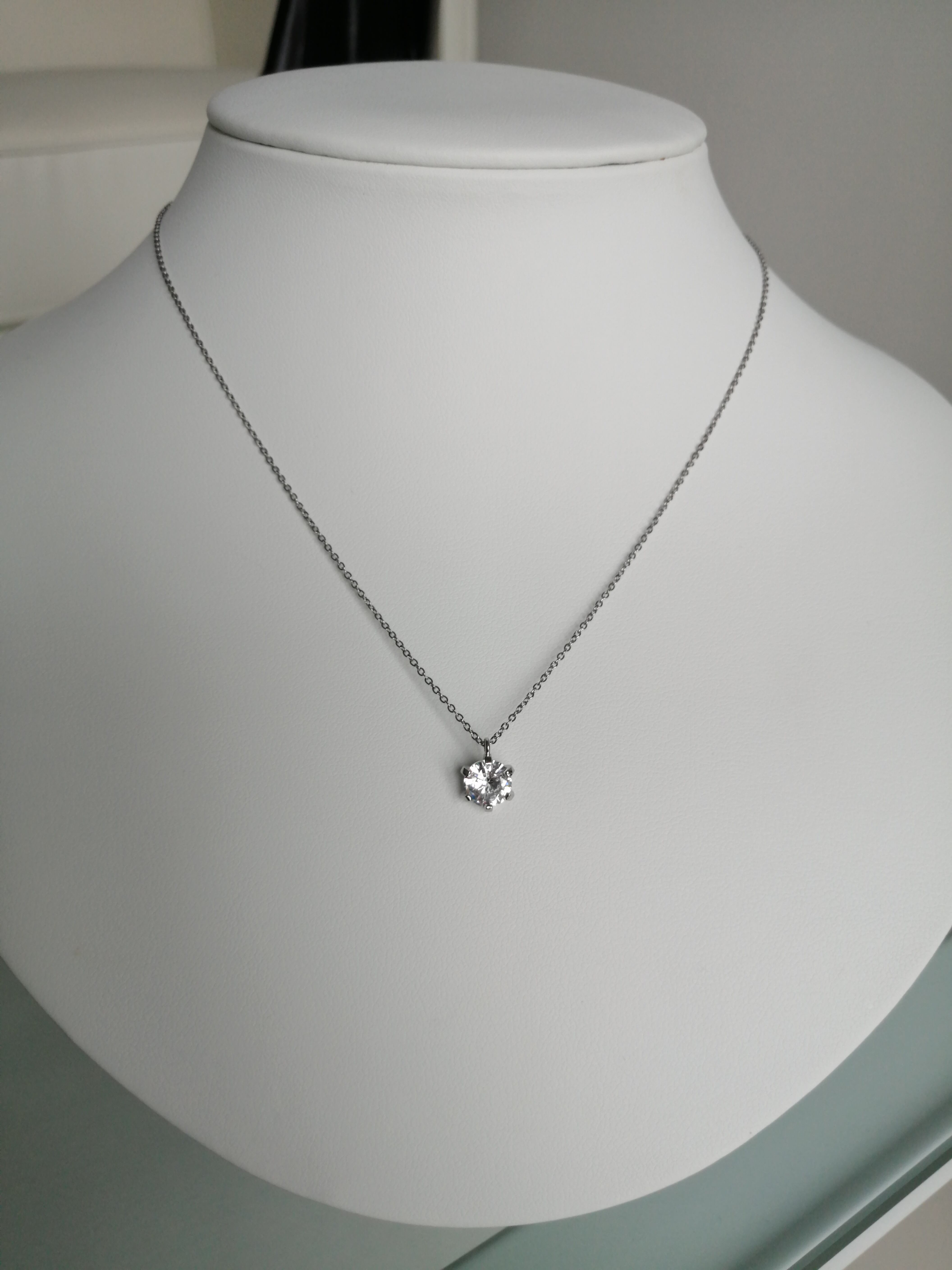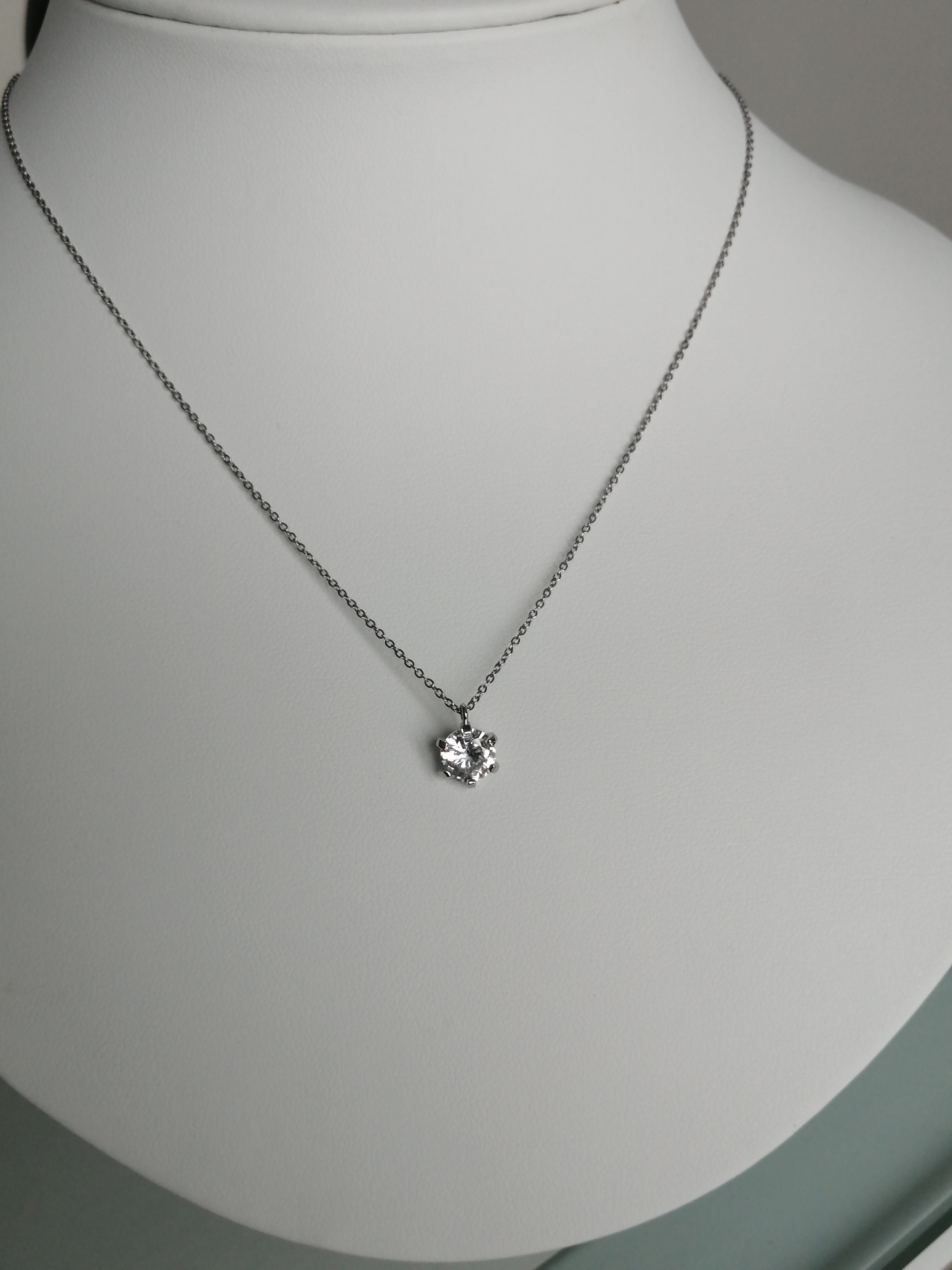 良質な輝き放つ、特大大粒1ctをシンプルデザインでセッティングした、プラチナ製品、高級仕上げ、高品質なネックレス