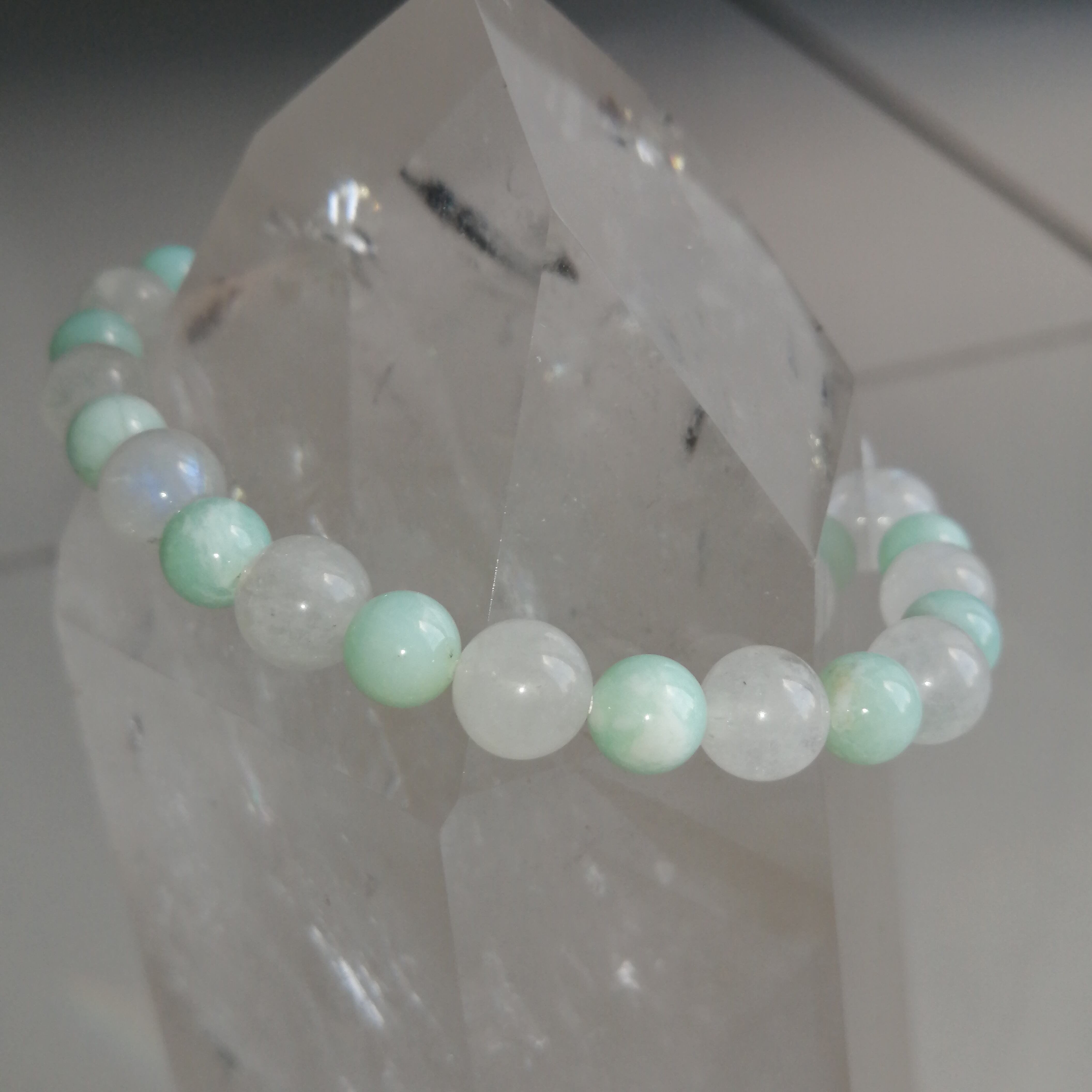 【式神封入】クリソプレーズとレインボームーンストーンのブレスレット