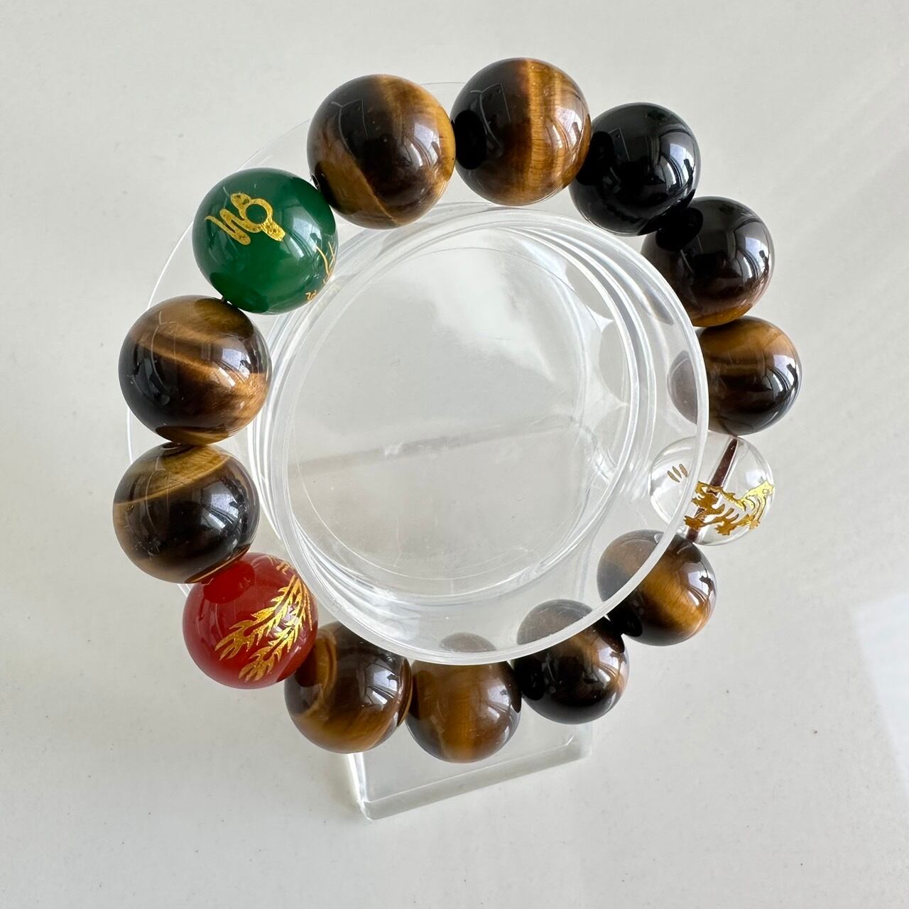 大変ありがたい四神獣の彫刻入り14mm、四神獣の色合いにあわせ、天然石が使用されています。