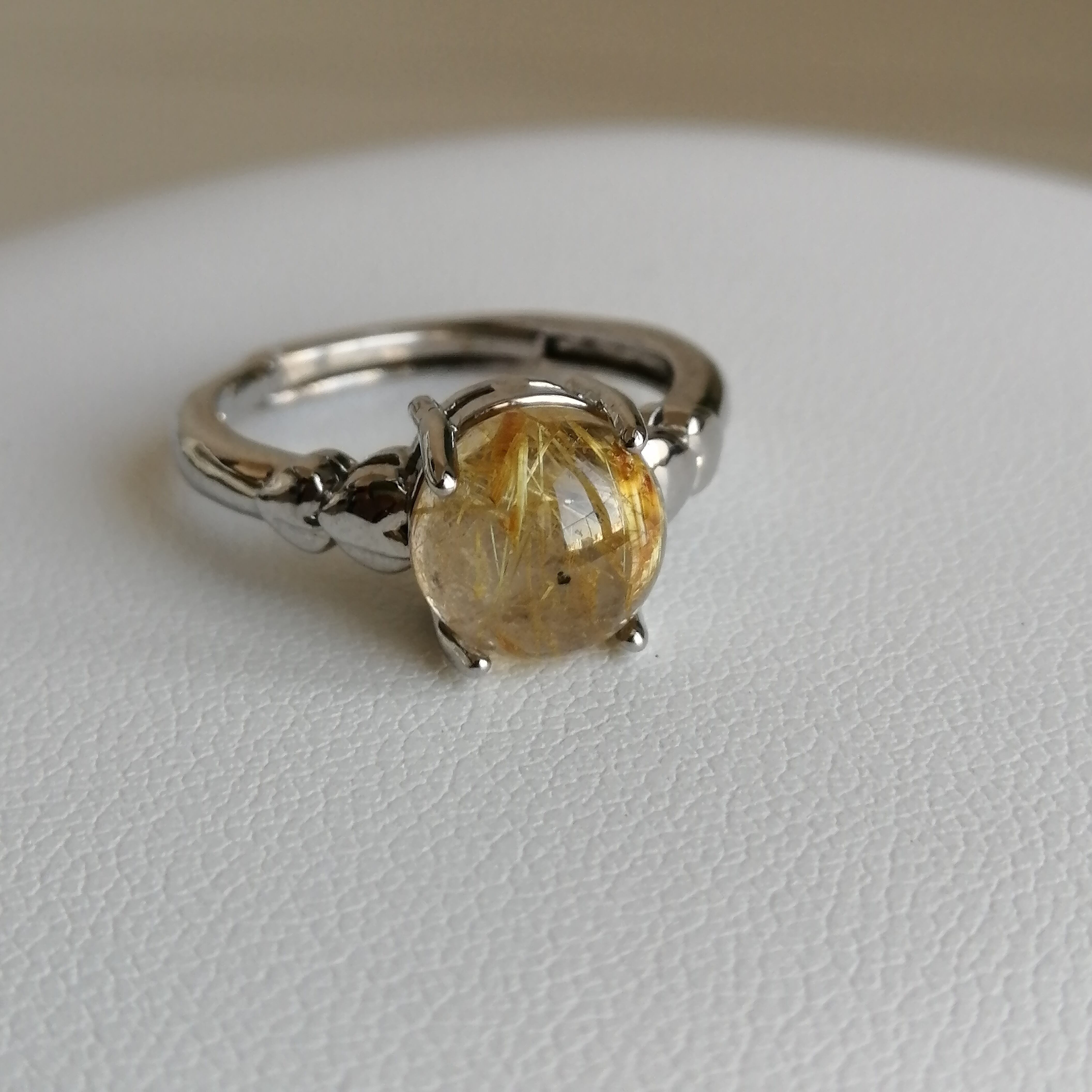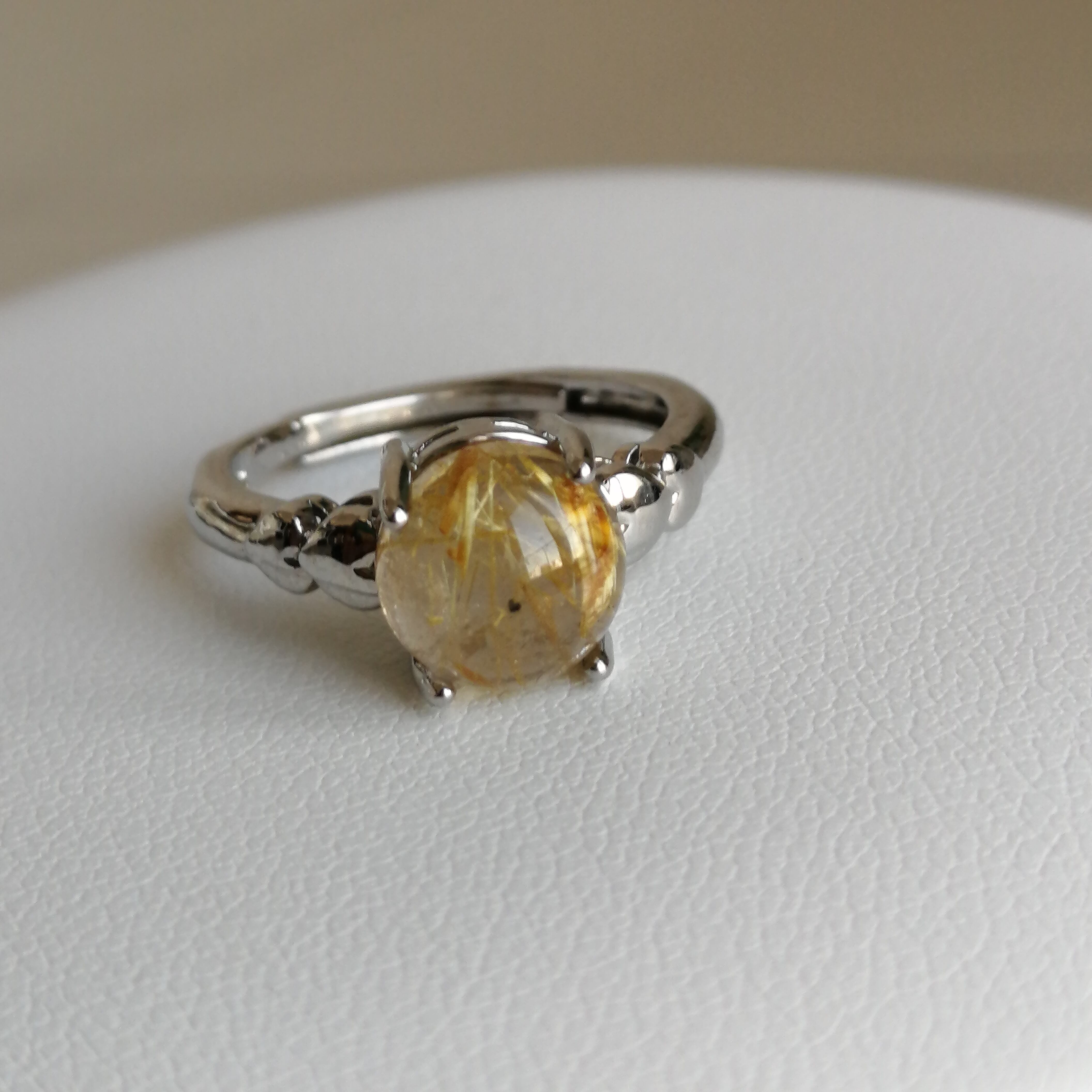 【式神封入】高品位ゴールドタイチンルチルクォーツリング 金 財 仕事 能力開花