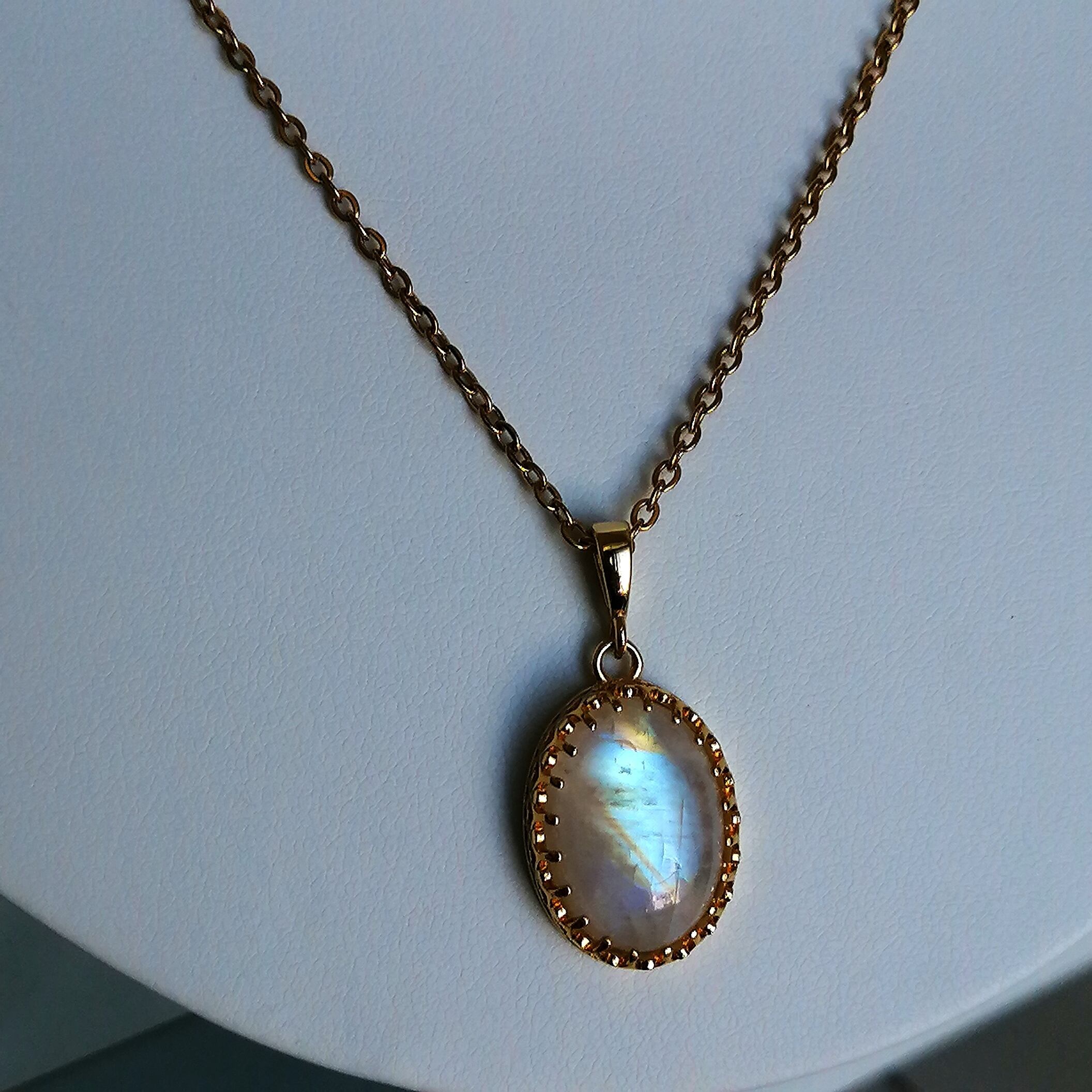 ムーンストーン[3LoU]ホワイトラブラドライトネックレス超大粒ST316L