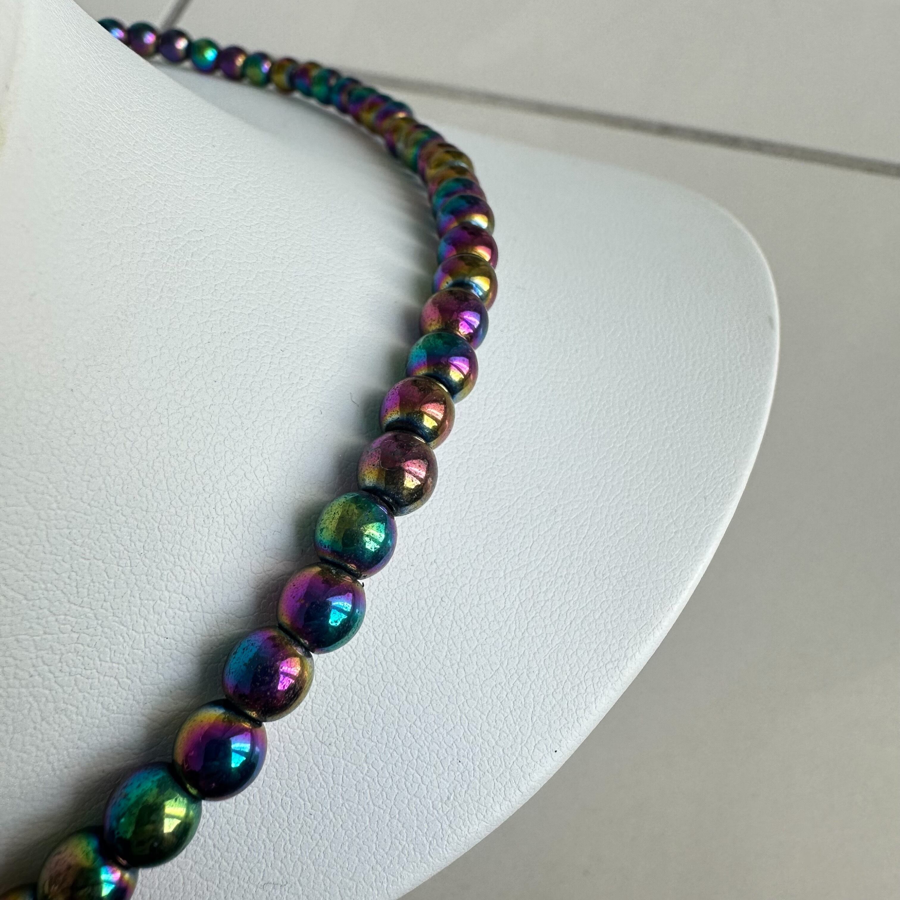 美しいレインボーカラーの磁気入りヘマタイトネックレスです。
