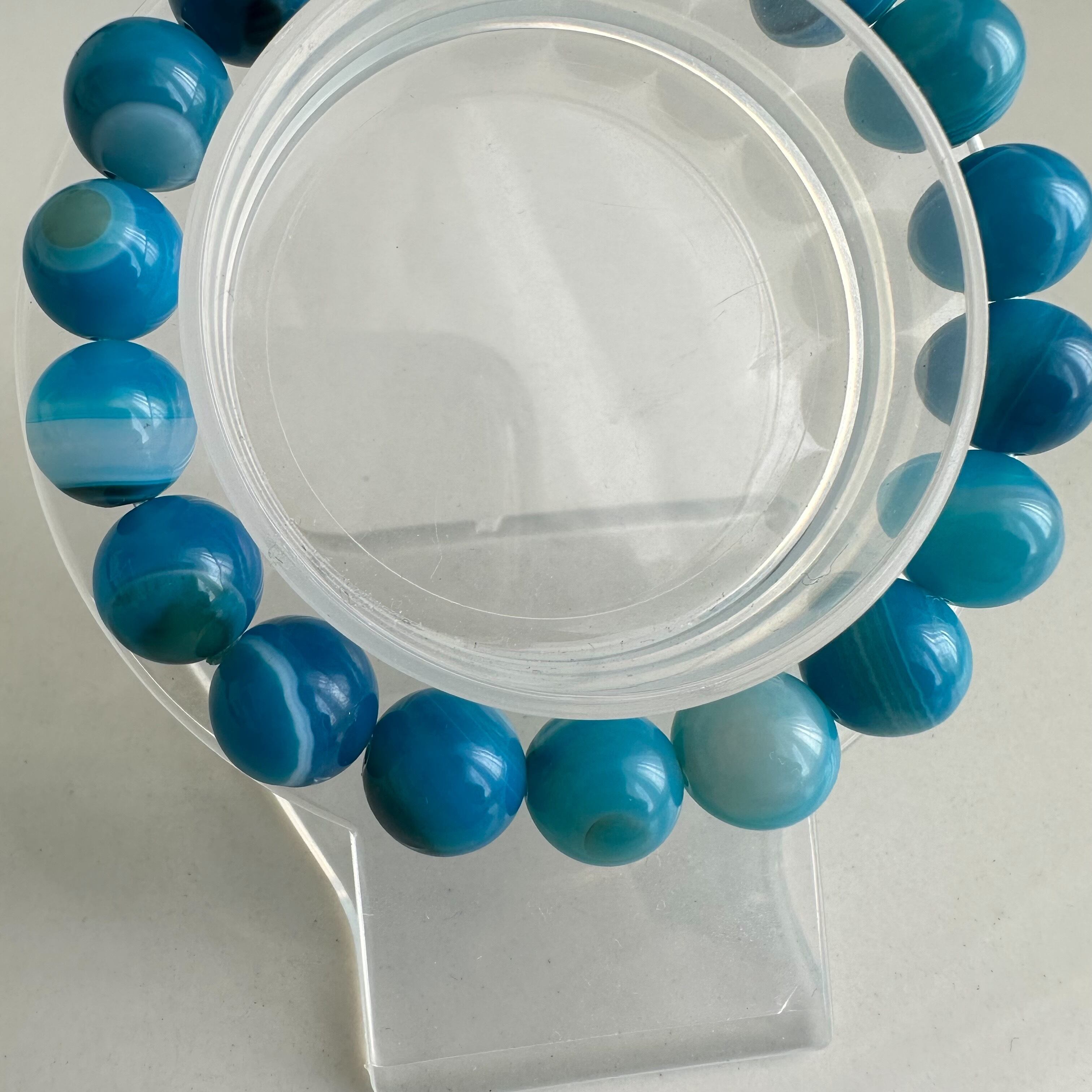 青縞瑪瑙(アオシマメノウ)(ブルーレースアゲート)と呼びます。 高ぶった感情を鎮め、人間関係の緊張を和らげる効果があります。