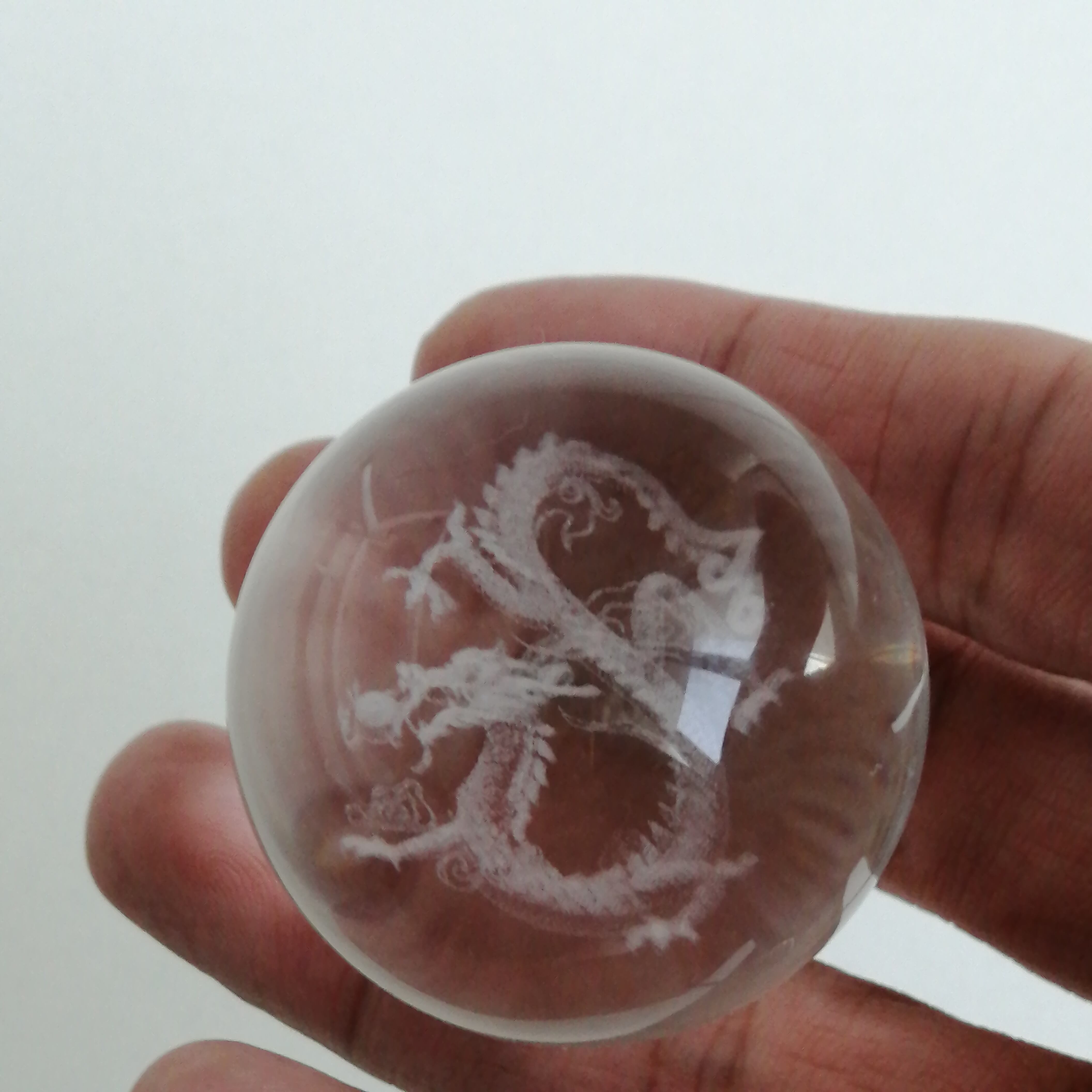 レーザーで彫るため素材はガラス珠となりますが、3Dで彫られた龍は精巧で、まるで丸珠の中に龍が飛翔しているかの様