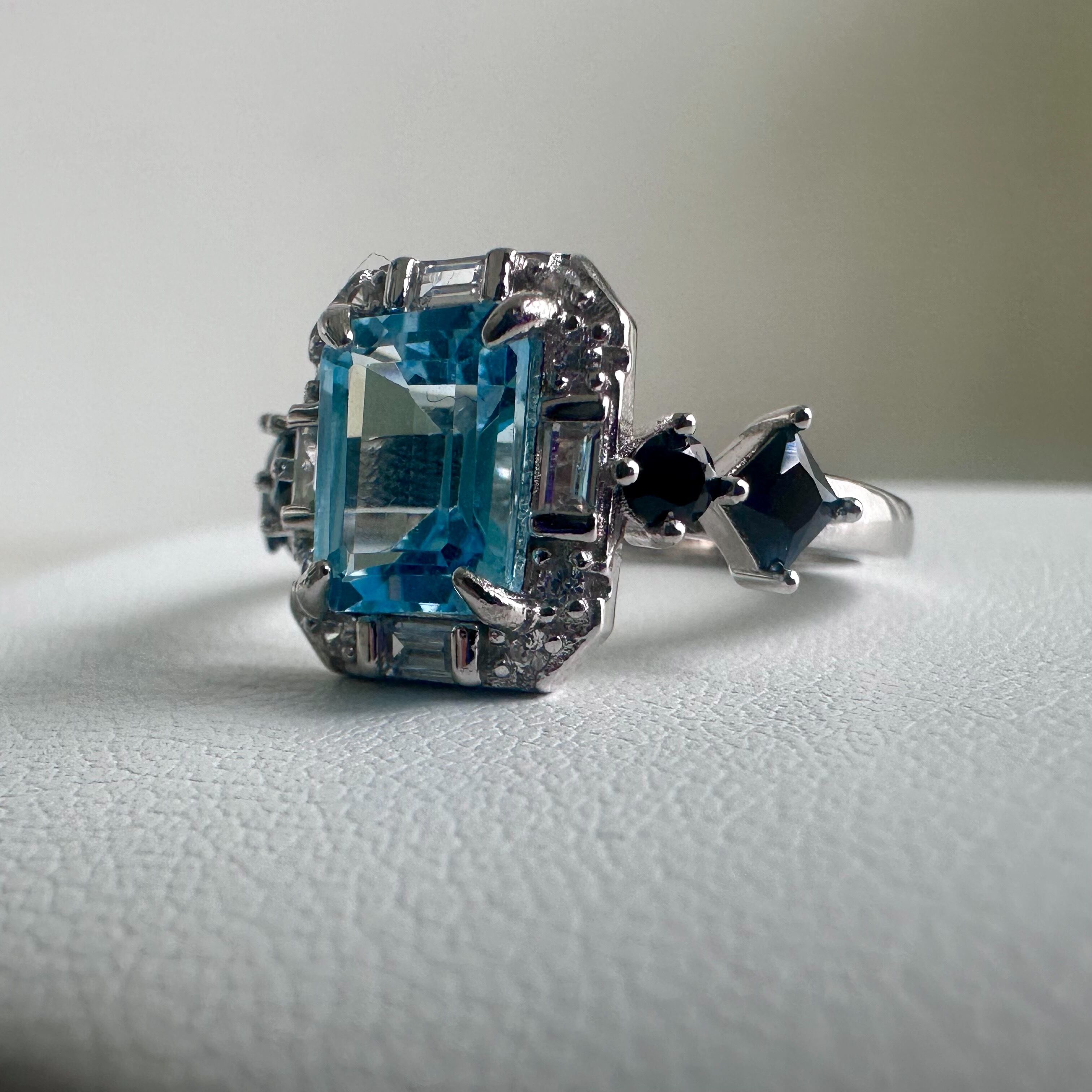とても美しい発色、まばゆく輝くブルートパーズ、スピネルによる大変高品位なリング