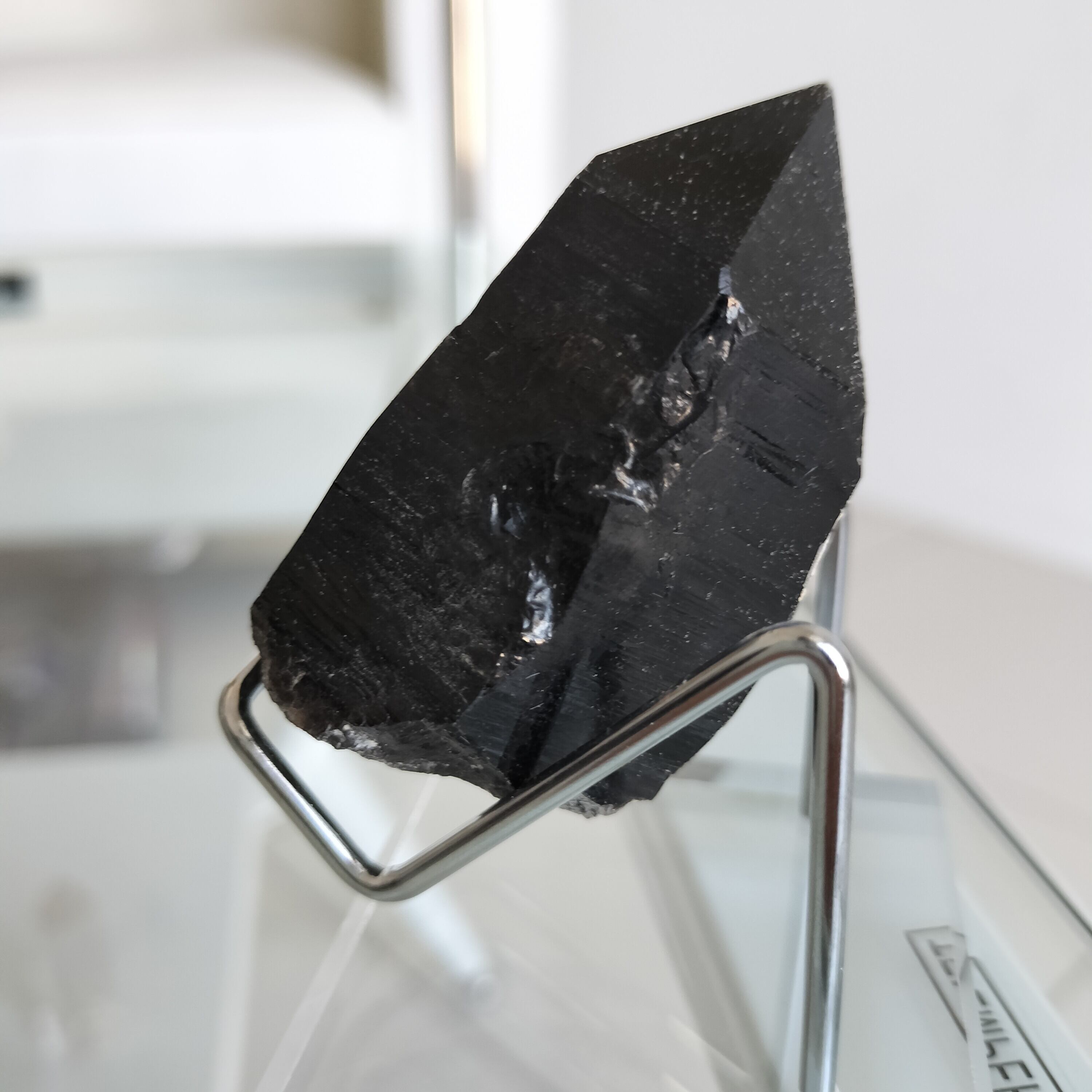 最高級モリオン=黒水晶[LX5E]原石 中国山東省産 台座付きインテリア 魔除け